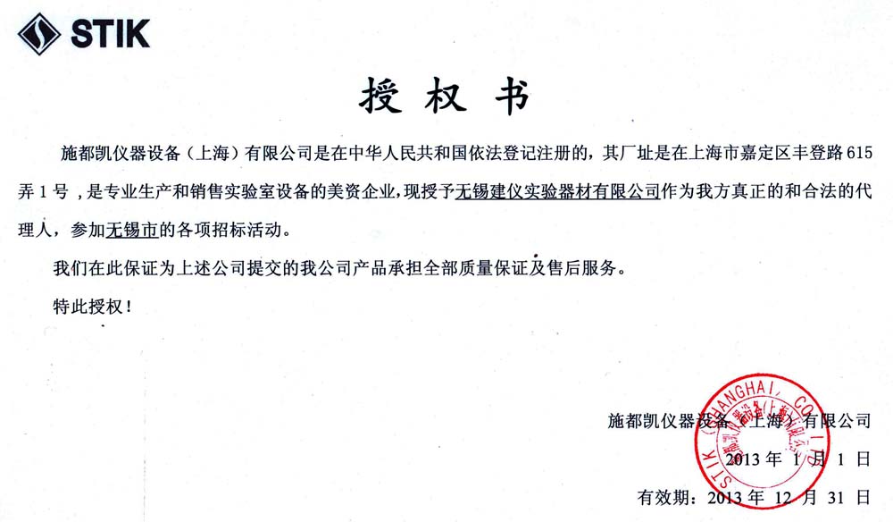 美国施都凯授权销售证明,施都凯(美国),STIK,真空干燥箱,二氧化碳培养箱,恒温恒湿箱,